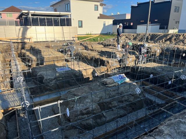 新 築 幕別町 S様邸 施工2025.09.20 基礎ベースコンクリート 基礎工事は現在ベースコンクリートの打設中です。上から伸びているホースからコンクリートを流し込んでいますね。ベースコンクリートを打ち終わったら、この上に基礎の型枠を乗せていきます。 一覧へ戻る 工事概要へ戻る