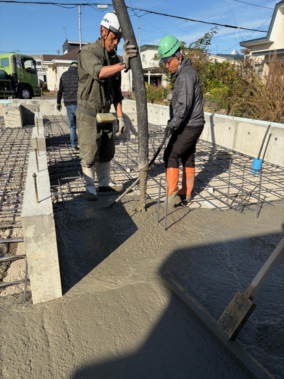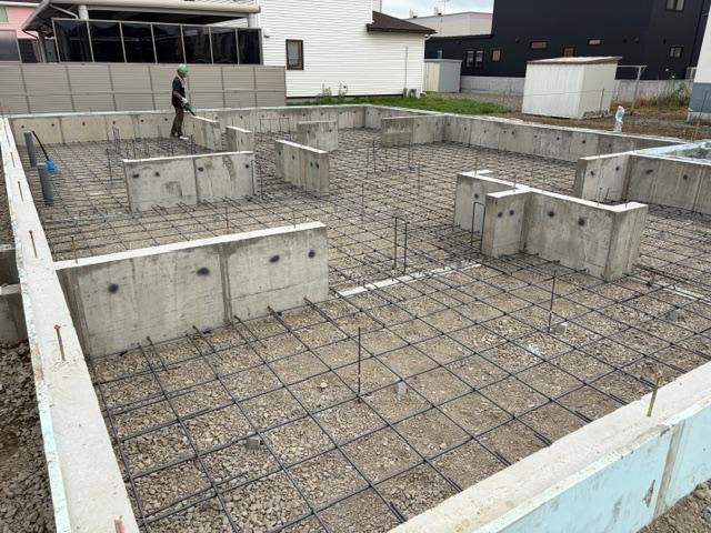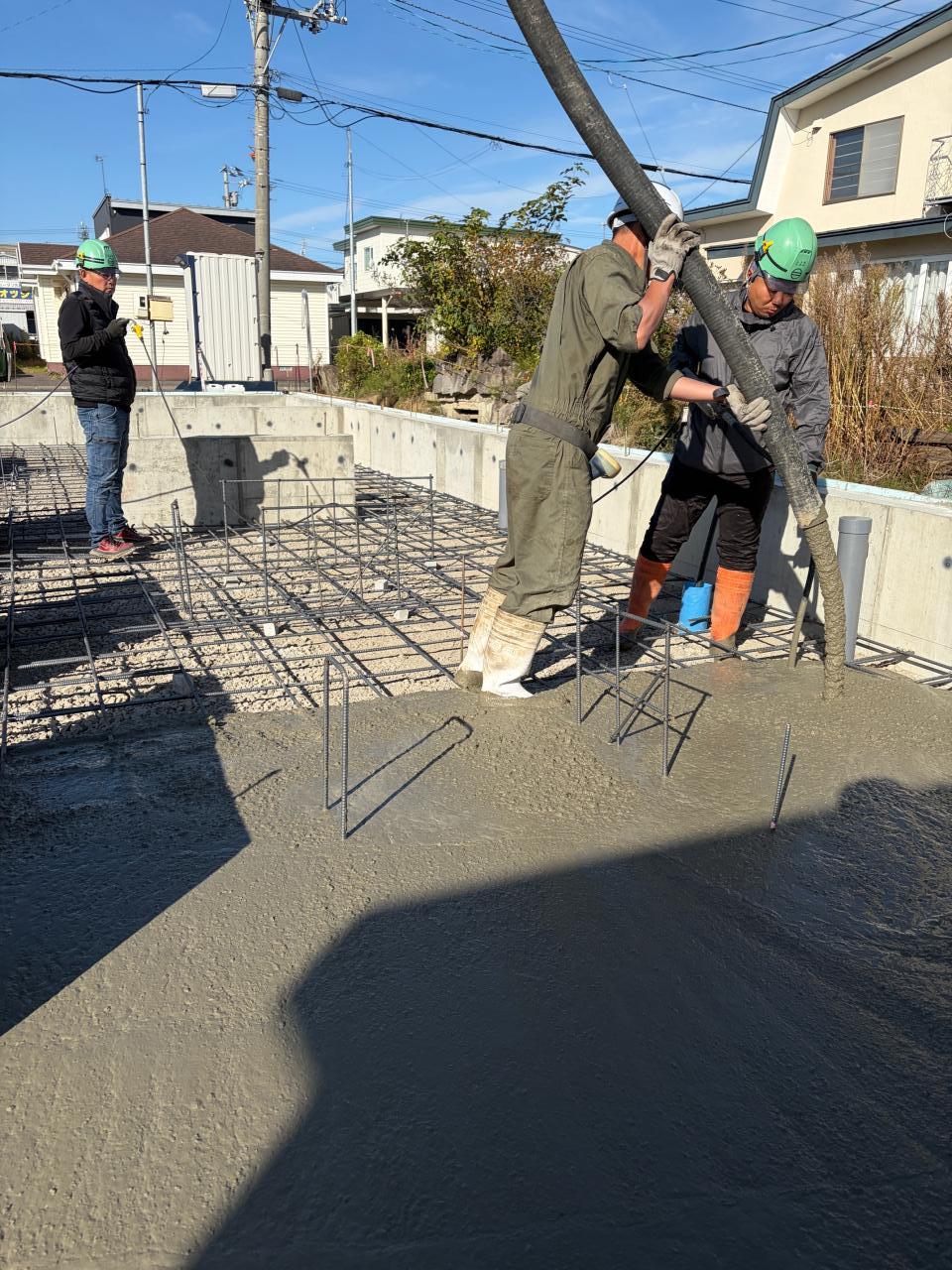新 築 幕別町 S様邸 施工2025.10.06 土間コンクリート 型枠完成からの埋め戻しも終わり、今日は基礎工事の土間コンが始まりました。コンクリートを流し込んだら、職人さんたちがきれいに均していきます。基礎工事も終わりに近づいてきました。 一覧へ戻る 工事概要へ戻る