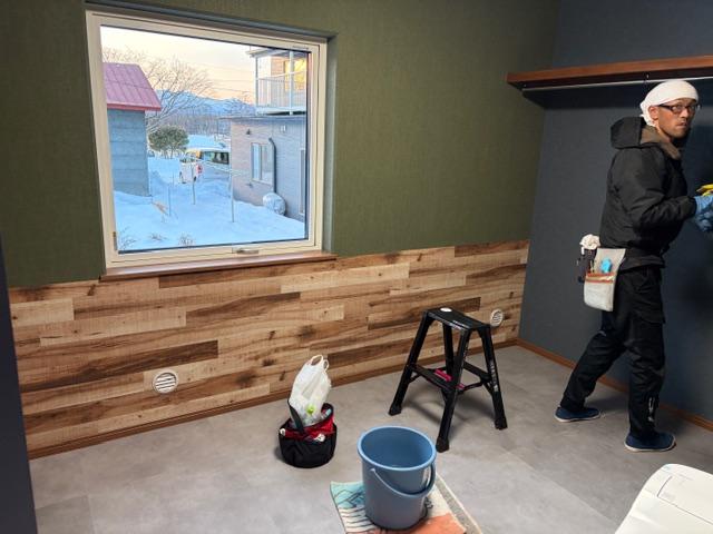 お家が完成し、今日は美装中です。