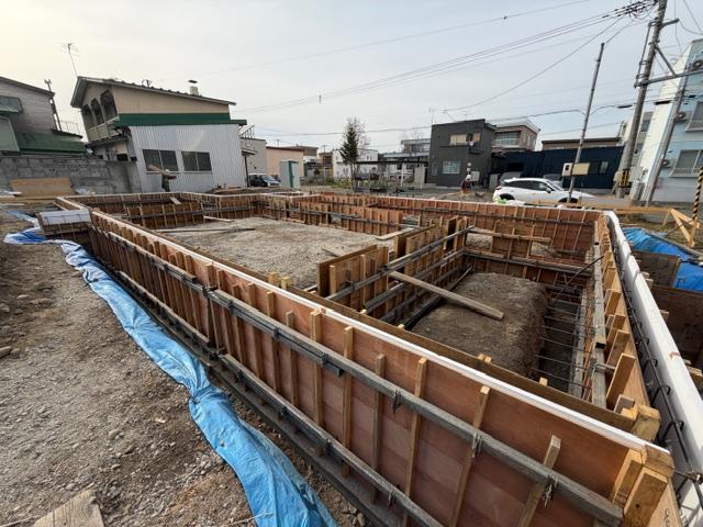 新 築 帯広市 H様邸 施工2026.04.17 基礎型枠工事 基礎工事の型枠を組み立てている様子です。木のパネルで枠を組んでいき、出来上がったらその中にコンクリートを流し込む作業に進んでいきます。 一覧へ戻る 工事概要へ戻る